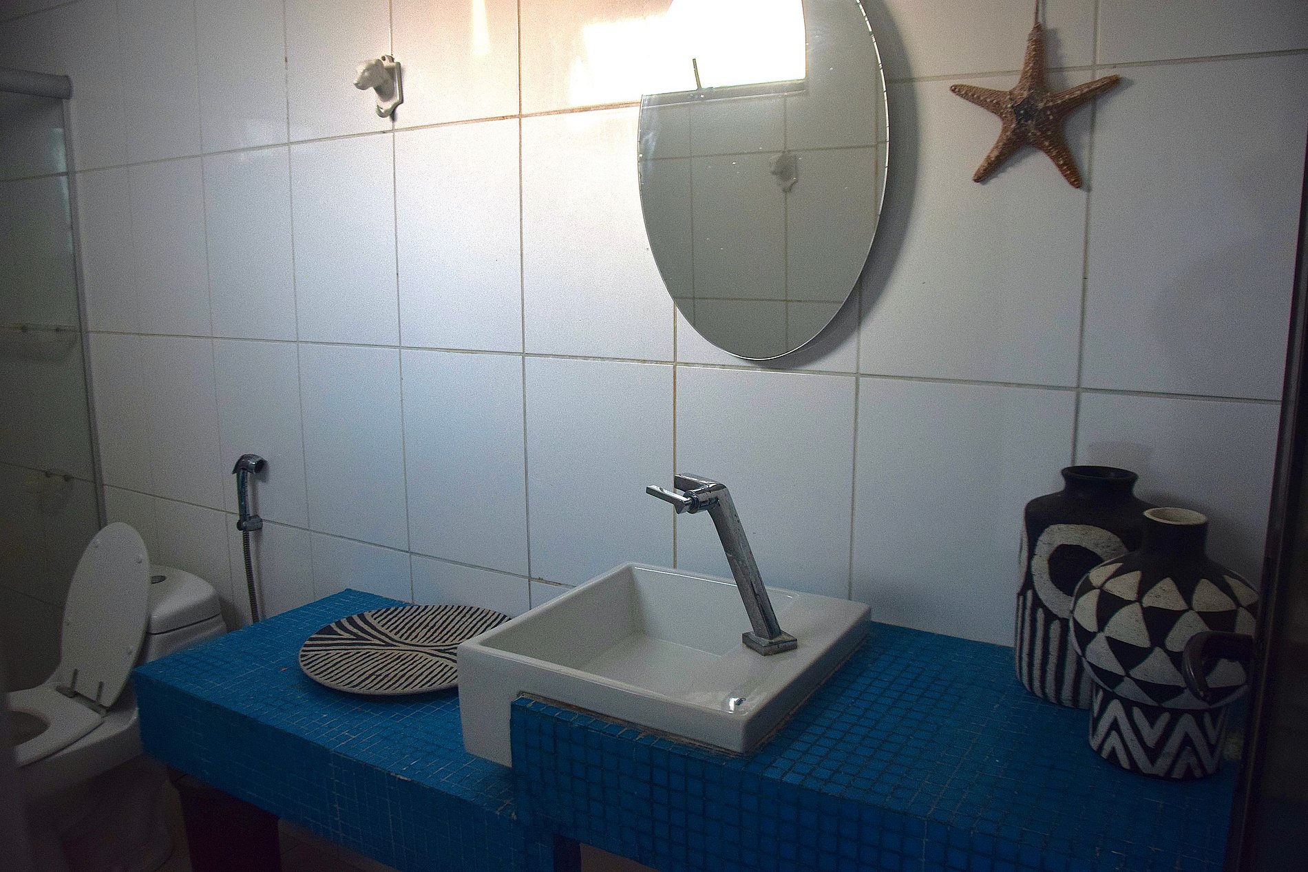 A casa esta localizada na beira mar , vizinho a Vila de Todos os Santos.